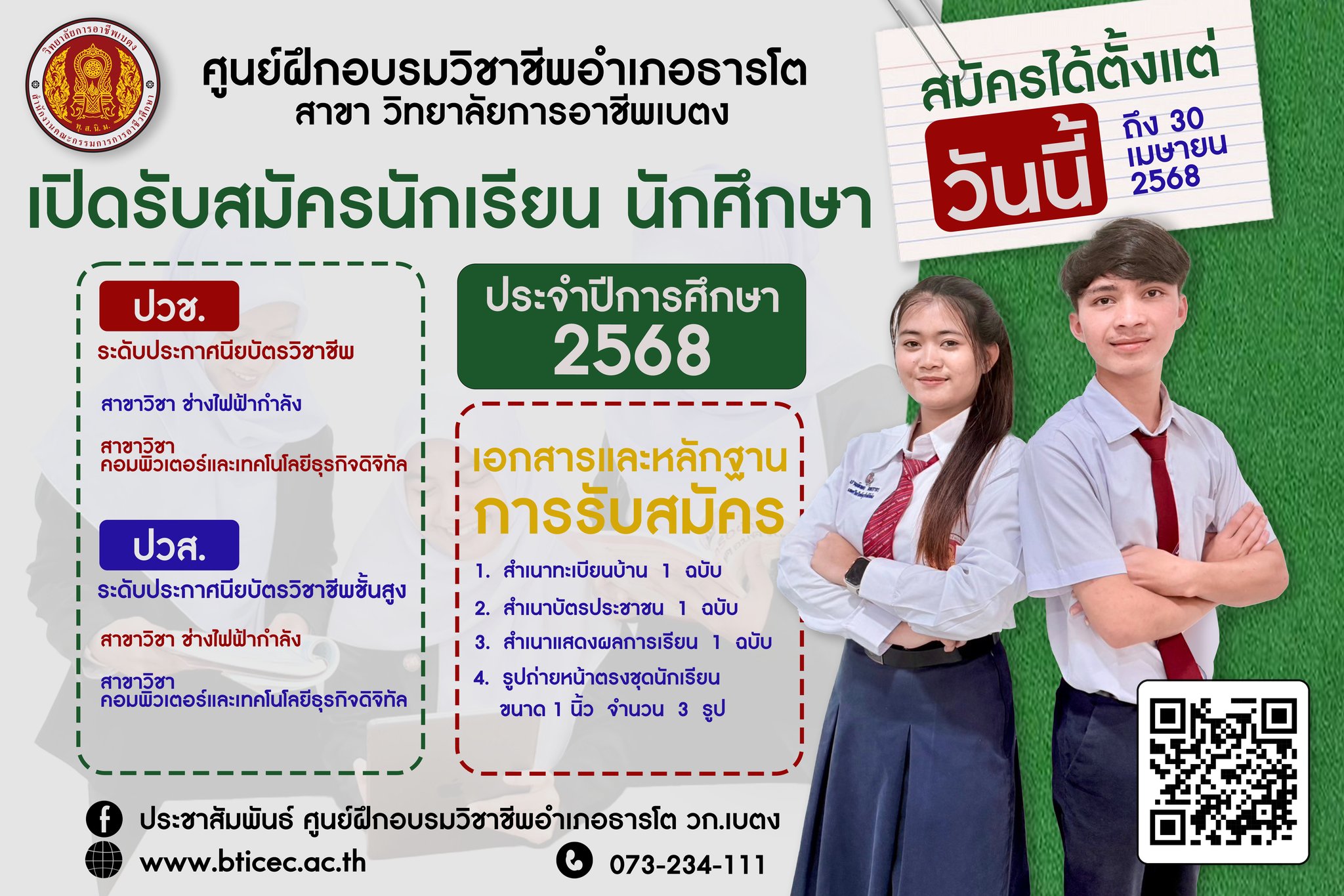 ประกาศรับสมัคร นักเรียน นักศึกษาใหม่ ประจำปีการศึกษา 2568
